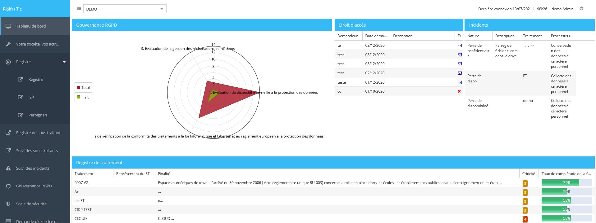 Risk'n tic is a young innovative french company recognized by the Ministry of research. Since 5 years it innovates at the service of companies to support them in simple and effective approaches to cyber risk management and implementation of the GDRP. The approch that we propose through our offer will allow you to comprehend the security of your data and your IS.